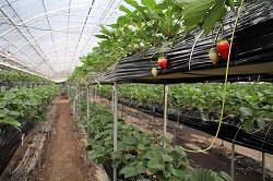 同社が設置している井戸は3基。水温が年間平均12~13℃と安定している深井戸水は、いちごの病気を防ぐのに最適な環境を作ります。「井戸水に含まれるミネラル成分も、いちごの味を引き立てていると思います」と平塚社長。加えて同社のハウスは日の出・日の入りが早い伊那谷の西側山麓に位置しているため、苗の「早寝早起き」が健康でおいしいいちごに結実するそうです。