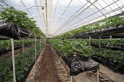 現在は夏季にいちごの苗の委託生産を行っており、関西から東北まで各地に合計25万株を出荷しています。苗づくりは病気を防ぐためにハウス内で行うのが常識ですが、「できる限り駒ヶ根の自然の中で育てたい」という信念から、太陽光が直接そそぐ屋外で栽培を行っています。同社の苗は花上がりがとてもよい(花が頻繁に咲く)ことから、全国の農家から期待と信頼が寄せられているのです。